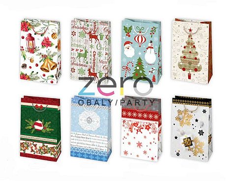Taška dárková 16x24x7 cm- mix 2 Vánoce - Červený a zelený sob