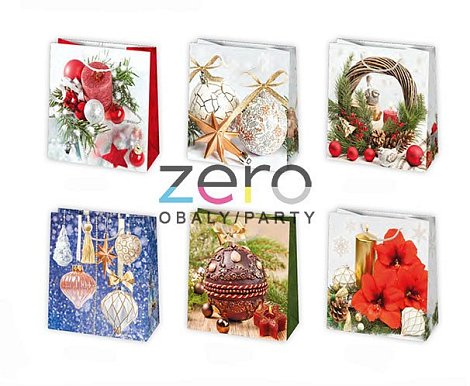 Taška dárková 15,5x15,5x8 cm - mix Vánoce - Bílá taška s ozdoby na strom | Půjčovna | Ahoj-sousede.cz