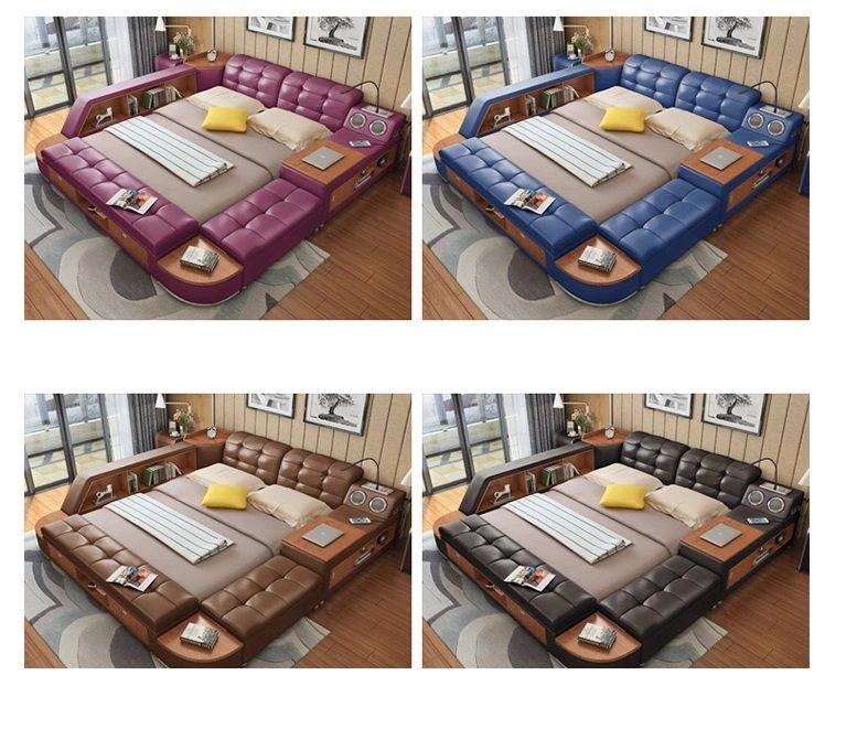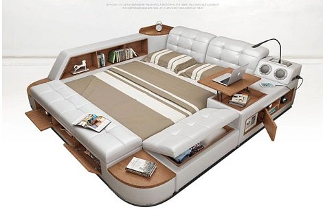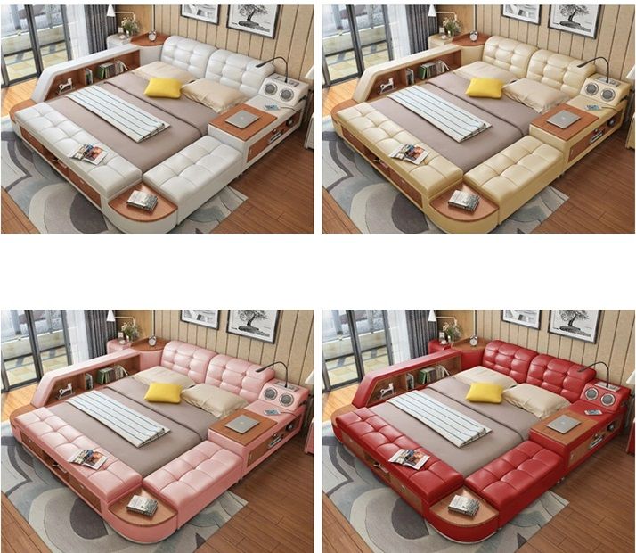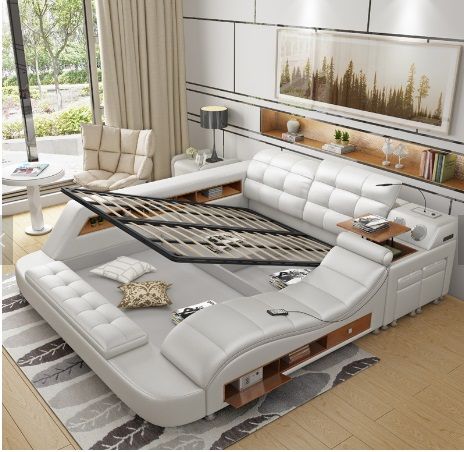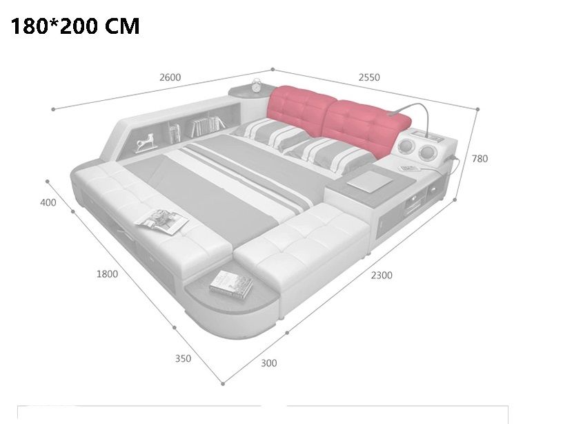 Moderní bílá kožená postel King Letiště BEZ MATRACE