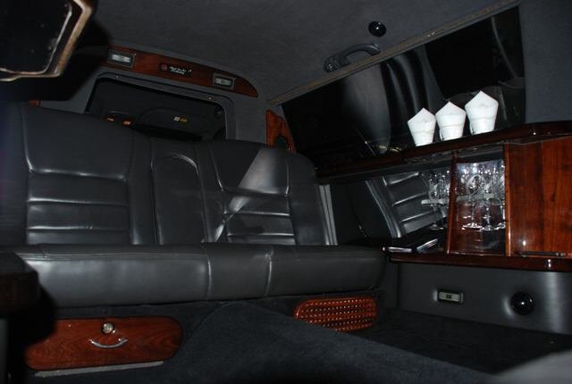 Černá prodloužená luxusní limuzína s odděleným salonkem pro 6 osob (+ 1 osoba na sedadle vedle řidiče), černá barva, klimatizace, bar s chlazenými nápoji, TV, video, CD, nezávislý audio systém. Provedení ve tmavé kůži.