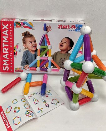 Smartmax magnetická stavebnice XL je ideální hračkou pro malé děti od 1roku. Přitahování a odpuzování magnetů je ohromí na jejich cestě za poznáním. Až se se stavebnicí seznam mohou budovat věže, mosty, zvířata, tvary a další velké stavby. Obsahuje celkem 42ks (12 dlouhých tyček po 12cm, 18 tyček středních a 12 koulí).