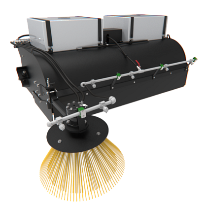 Cena bez DPH Půjčovné 1-4 hod 750,- Kč Půjčovné 1 den 1500,- Kč Půjčovné 2-7 dní 1300,- Kč Půjčovné 8-30 dní 1000,- Kč Půjčovné nad 30 dní 850,- Kč Zametací zařízení se sběrnou nádobou je určené na zametání komunikací, nádvoří, parkovišť a různých prostranství. Sběrná nádoba umožňuje okamžité naložení odpadků na odvozový prostředek. Uchycení pro smykem řízené nakladače UNC, Locust a Novotný. Hmotnost 4450 kg Šířka lopaty 1800 mm Objem 0,38 m3 Objem kropící nádoby 150 l